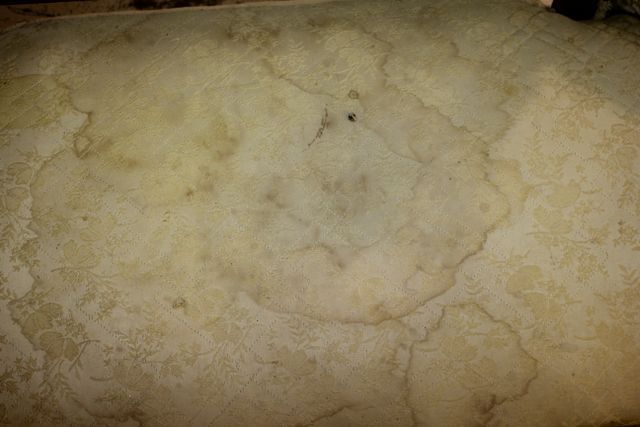 Walnut Victorian Settee upholstery has stains, matches lot # 507; 59" w. x 41" h Walnut Victorian Settee upholstery has stains, matches lot # 507; 59" w. x 41" h