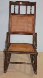 Walnut East Lake Sewing Rocker has cane seat and back; seat has a hole in the cane; 34" h. Walnut East Lake Sewing Rocker has cane seat and back; seat has a hole in the cane; 34" h.