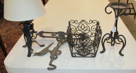 549 Group of Iron including wall sconce, small lam, candlestick, square planter