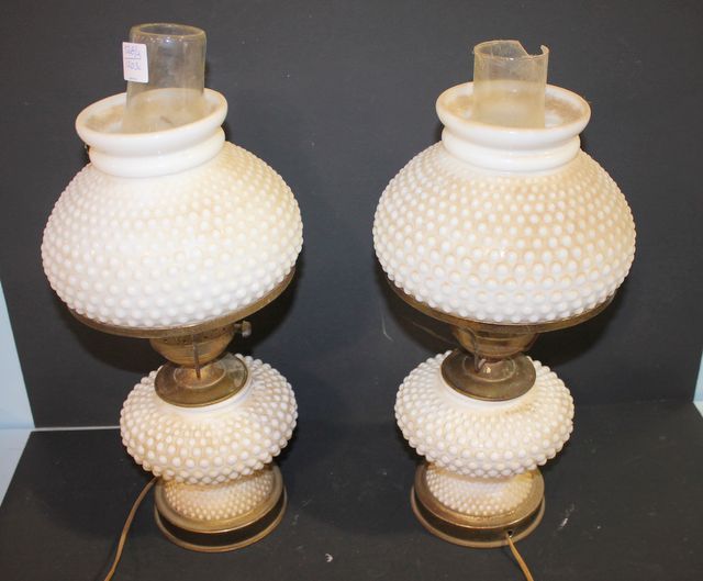 Two Milk Glass Lamps 19" h. Two Milk Glass Lamps 19" h.