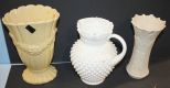 579 Lenox Vase, Milk Glass Pitcher, USA Pottery Vase Lenox 8 1/2" h., USA vase 9" h.