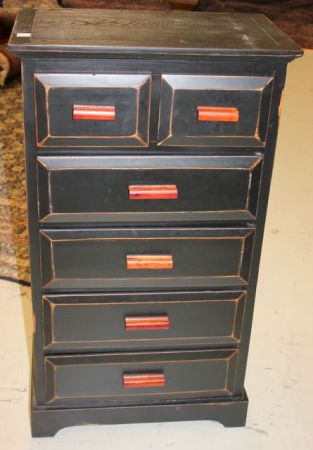 Six Drawer Distressed Black Chest 22" w., 39" h. Six Drawer Distressed Black Chest 22" w., 39" h.