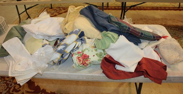 655 Bag Lot of Placemats, Tablecloths, and Aprons Bag Lot of Placemats, Tablecloths, and Aprons