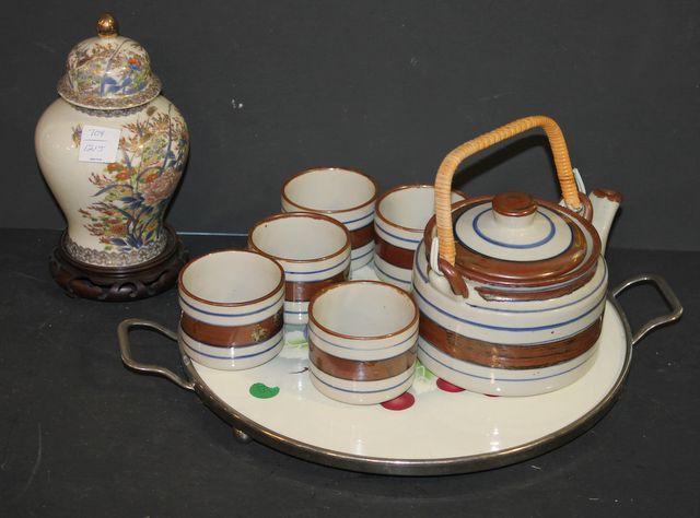 709 Footed Painted Tray, Saki Set, Ginger Jar jar 7 1/2" h.
