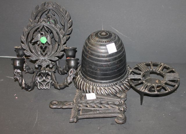726 Two Iron Eagle Sconces, Trivets, Iron String Holder sconces 8" w., 9" h.