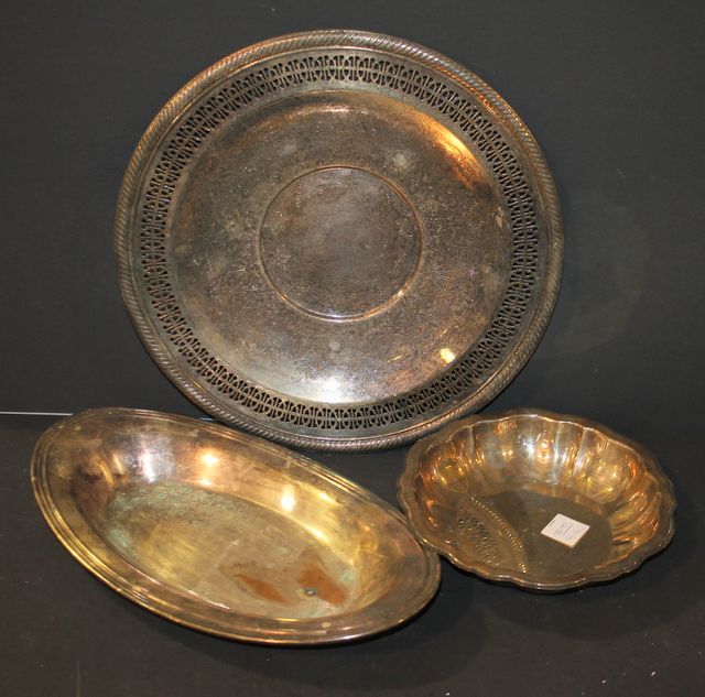 Three Pieces of Silverplate bowl, tray, and oval tray Three Pieces of Silverplate bowl, tray, and oval tray