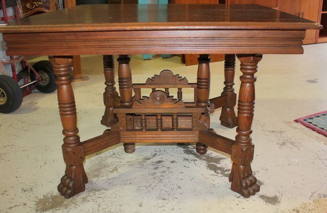 740 Square Oak Clawfoot Dinning Table with spoon carving; 42" sq., 28" h.