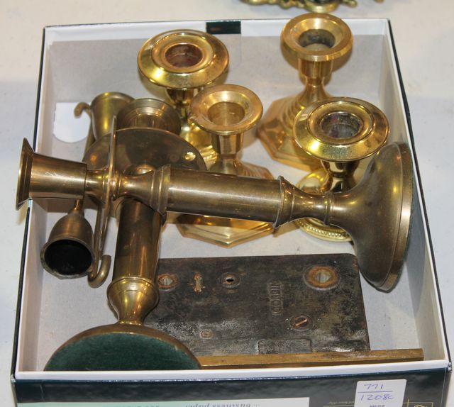 771 Brass Candlesticks and Brass Lock Brass Candlesticks and Brass lock