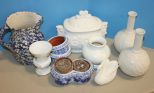 Vases, Tureen, and Candleholders tureen 7 1/2" w. Vases, Tureen, and Candleholders tureen 7 1/2" w.