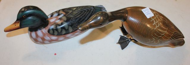 862 Two Wood Carved Ducks Two Wood Carved Ducks