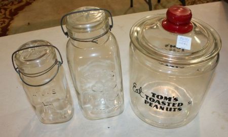 867 Good Luck Jar, Atlas Jar, Tom's Roasted Peanut Jar Tom's jar has chips on rim