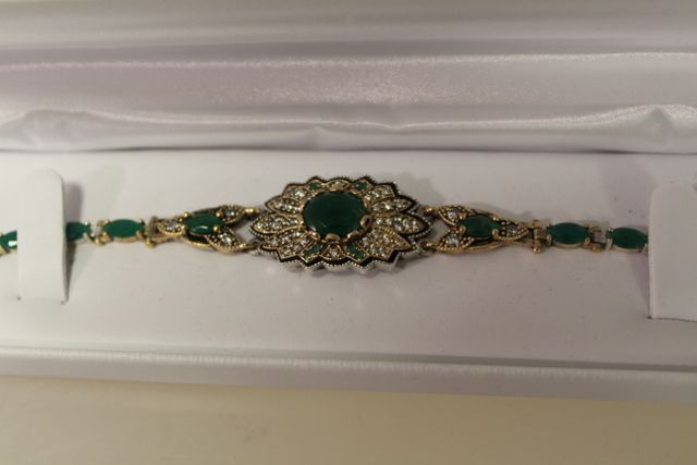 11ct emerald bracelet in box. 11ct emerald bracelet in box.