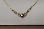 Ruby diamond necklace in box. Ruby diamond necklace in box.