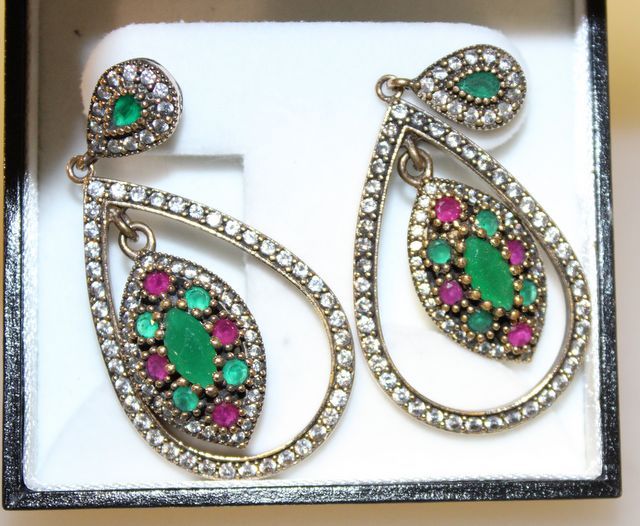 Emerald estate earrings in box. Emerald estate earrings in box.