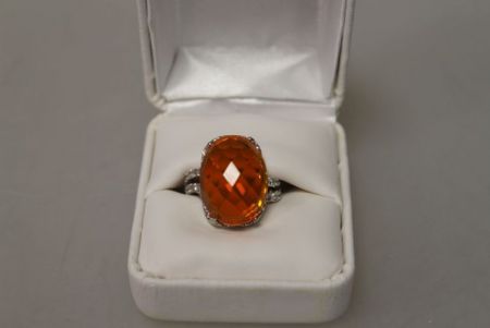 6ct Mexican fire orange opal ring in box. 6ct Mexican fire orange opal ring in box.