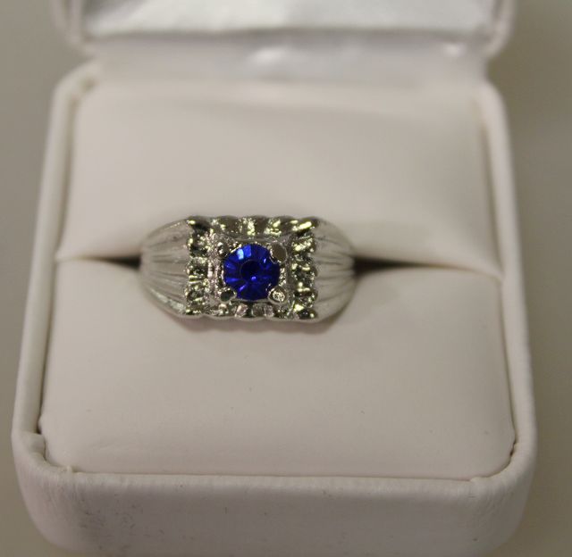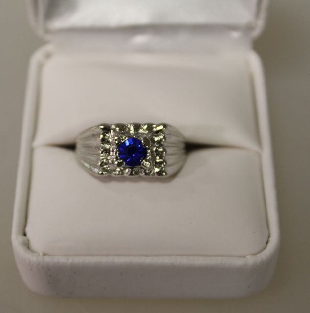 Men's gemstone ring in box. Men's gemstone ring in box.