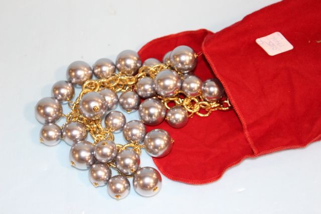 Faux pearl KJL necklace in pouch. Faux pearl KJL necklace in pouch.