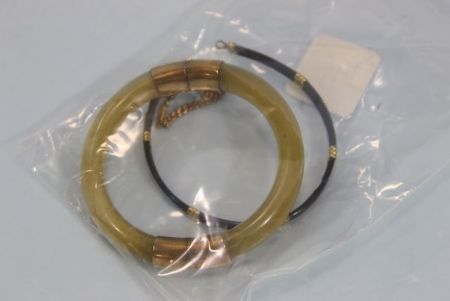Pair of bracelets. One is horsehair and the other is Jade. Pair of bracelets. One is horsehair and the other is Jade.