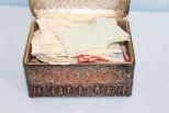 Handkerchiefs and tea napkins. Box measures 6" x 4 1/2" x 3 1/4"h Handkerchiefs and tea napkins. Box measures 6" x 4 1/2" x 3 1/4"h