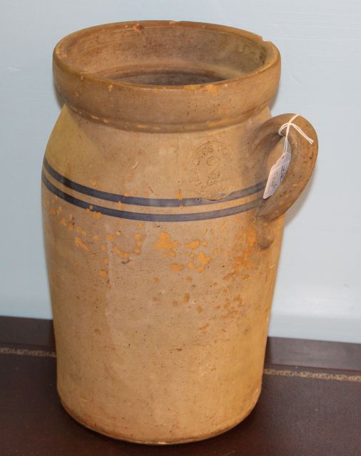 Stewart Pottery Crock. Has some chips. Stewart Pottery Crock. Has some chips.