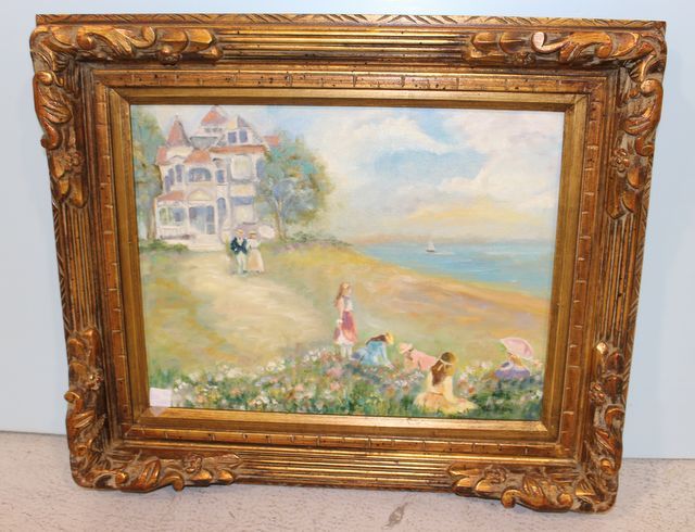 Victorian home with family in front. Image size is 17 1/2" w x 13 1/2" h. Framed is 25" w x 21" h. Victorian home with family in front. Image size is 17 1/2" w x 13 1/2" h. Framed is 25" w x 21" h.