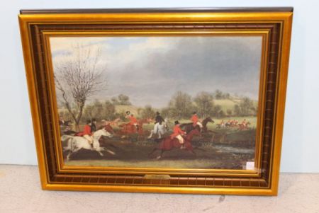 Print on canvas of "The Fox Chase" with retouched painting. Image size 21 1/2"w x 15" h. Framed 27" w x 20 1/2"h. Print on canvas of "The Fox Chase" with retouched painting. Image size 21 1/2"w x 15" h. Framed 27" w x 20 1/2"h.