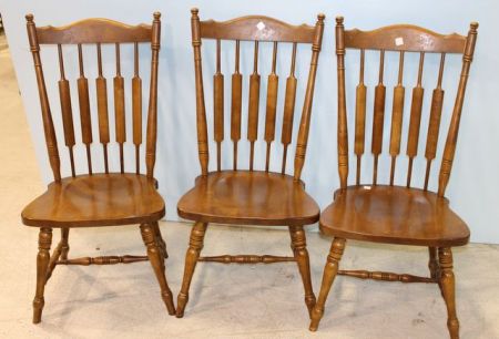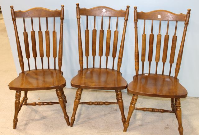 Three dining chairs with cat tail backs. Three dining chairs with cat tail backs.