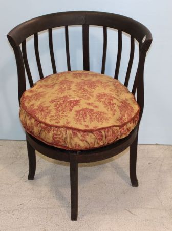 Has cushion and repairs. Measures 21 1/2"w x 20"d x 30"h. Seat is 19"h. Has cushion and repairs. Measures 21 1/2"w x 20"d x 30"h. Seat is 19"h.