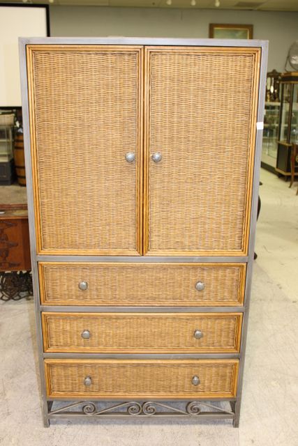 Wicker and iron entertainment center with two doors and two drawers. Measures 36"wx 24"d x 67"h. Wicker and iron entertainment center with two doors and two drawers. Measures 36"wx 24"d x 67"h.