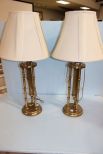 Rembrandt lamps with glass shades. Also has fabric shades on the pair. 34" without the shades and 36" with the shades. Rembrandt lamps with glass shades. Also has fabric shades on the pair. 34" without the shades and 36" with the shades.