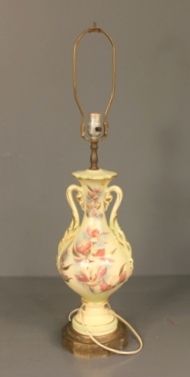 Hand Painted Porcelain Lamp with Floral Design, gold trim; 24" h. Hand Painted Porcelain Lamp with Floral Design, gold trim; 24" h.