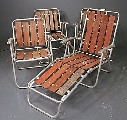 Three Fold Out Chairs and Lounger. Made of Teak and Aluminum. Three Fold Out Chairs and Lounger. Made of Teak and Aluminum.