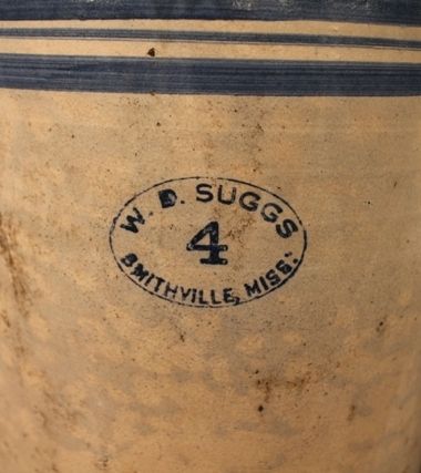 Crock Jug, W.D. Suggs, Smithville, MS; 16" h. Crock Jug, W.D. Suggs, Smithville, MS; 16" h.