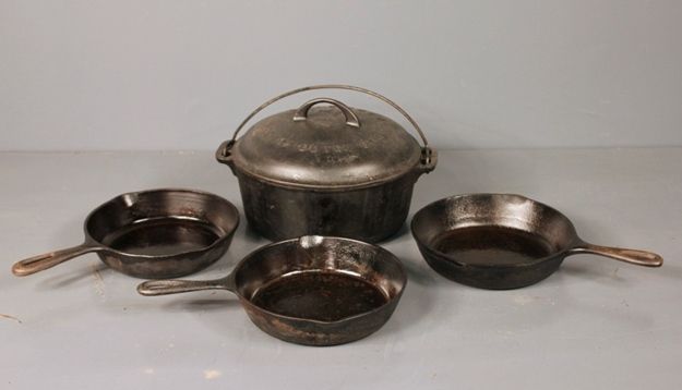 216 Griswold Dutch Oven and Three 8" Cast Iron Skillets