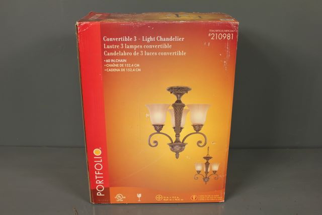 Convertible Three-Light Chandelier/ 16" x 17 1/2", 60" chain Convertible Three-Light Chandelier/ 16" x 17 1/2", 60" chain
