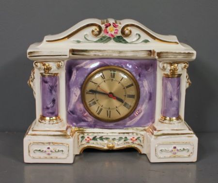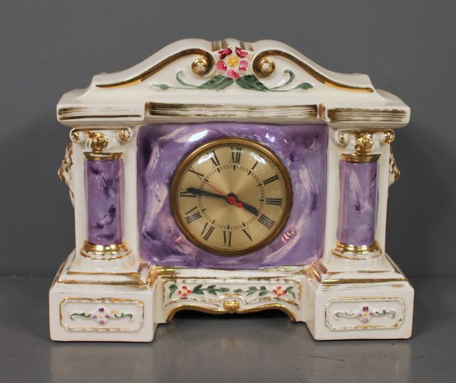 Ceramic Mantel Clock; 10" h., 12" w. Ceramic Mantel Clock; 10" h., 12" w.