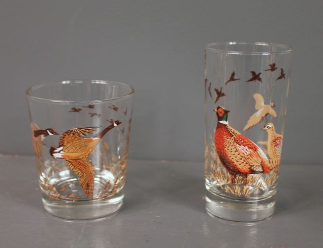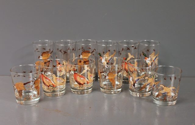Twelve Glasses and Tumblers with Waterfowl Design Twelve Glasses and Tumblers with Waterfowl Design