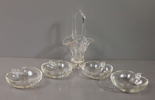 294 Glass Basket and Four Apple Shaped Candy Dishes