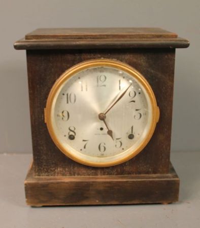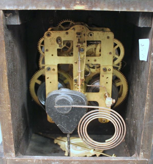 Seth Thomas Clock; 9 1/2" h., 8 1/2" w., 5 1/2" d., missing back Seth Thomas Clock; 9 1/2" h., 8 1/2" w., 5 1/2" d., missing back