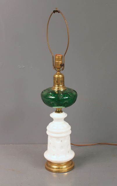 Green and White Art Glass Lamp; 27" h. Green and White Art Glass Lamp; 27" h.