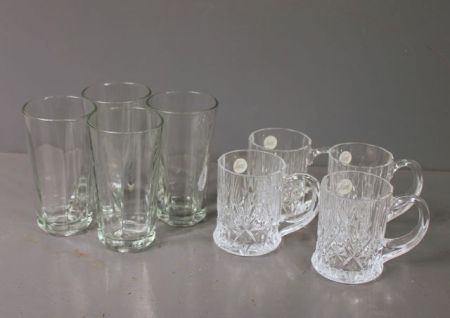 Group of Four Clear Glasses and Four Clear Crystal Mugs Group of Four Clear Glasses and Four Clear Crystal Mugs