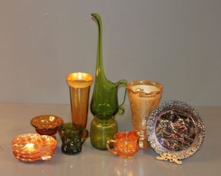 Group of Carnival Glass Vases and Plates Group of Carnival Glass Vases and Plates