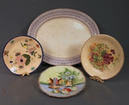 Group of Four Decorative Plates, decorative platter and three hand painted plates Group of Four Decorative Plates, decorative platter and three hand painted plates
