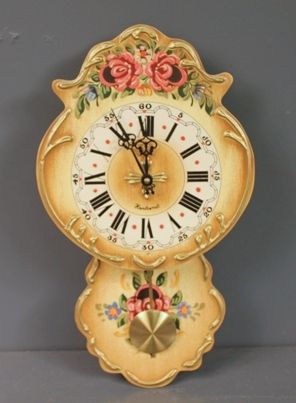 Wooden Wall Clock by Handbemalt; 17" h. Wooden Wall Clock by Handbemalt; 17" h.