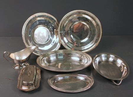 Group of Silverplate Items, includes; two Silverplate plates, FD Rogers, WM Rogers Silverplate Group of Silverplate Items, includes; two Silverplate plates, FD Rogers, WM Rogers Silverplate
