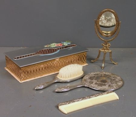 Group of Grooming/Vanity Set Items, includes; hand mirror, brush, comb, small vanity m Group of Grooming/Vanity Set Items, includes; hand mirror, brush, comb, small vanity m