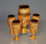 547 Painted Gold Glass Water Pitcher and Glass Set