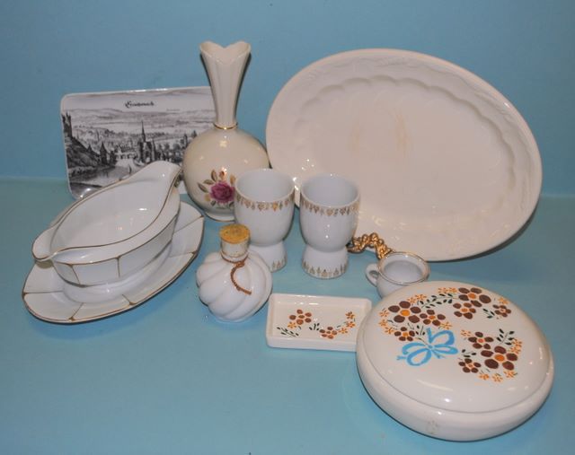 Group of Miscellaneous China Pieces, group includes 10 pieces; two plates, gravy boat Group of Miscellaneous China Pieces, group includes 10 pieces; two plates, gravy boat