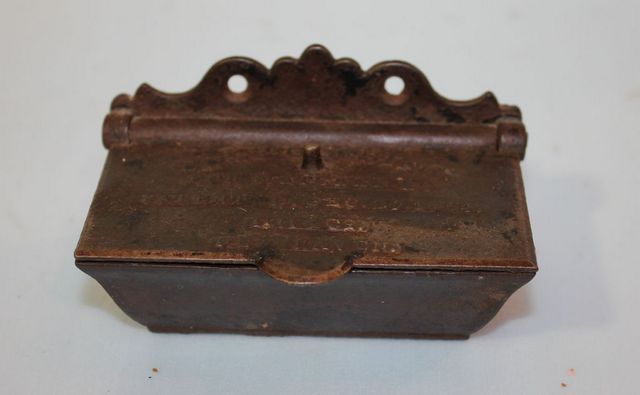 Self-Closing Antique Iron Match Box; 3 7/8"w x 2" x 2" Self-Closing Antique Iron Match Box; 3 7/8"w x 2" x 2"