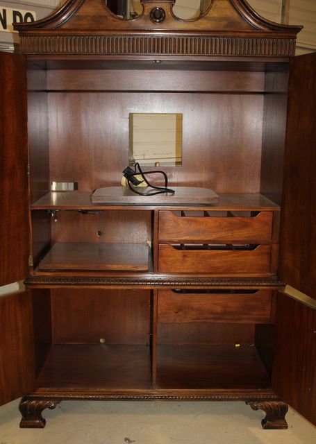 Henredon Entertainment Center, two door contemporary entertainment center in the Chippendale design, hand carved bracket feet; 51 1/2" w., 23 1/2" d., 92" h. Henredon Entertainment Center, two door contemporary entertainment center in the Chippendale design, hand carved bracket feet; 51 1/2" w., 23 1/2" d., 92" h.